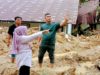 Foto : Bakhtiar Ahmad Sibarani memberikan penghiburan kepada korban bencana banjir Barus.