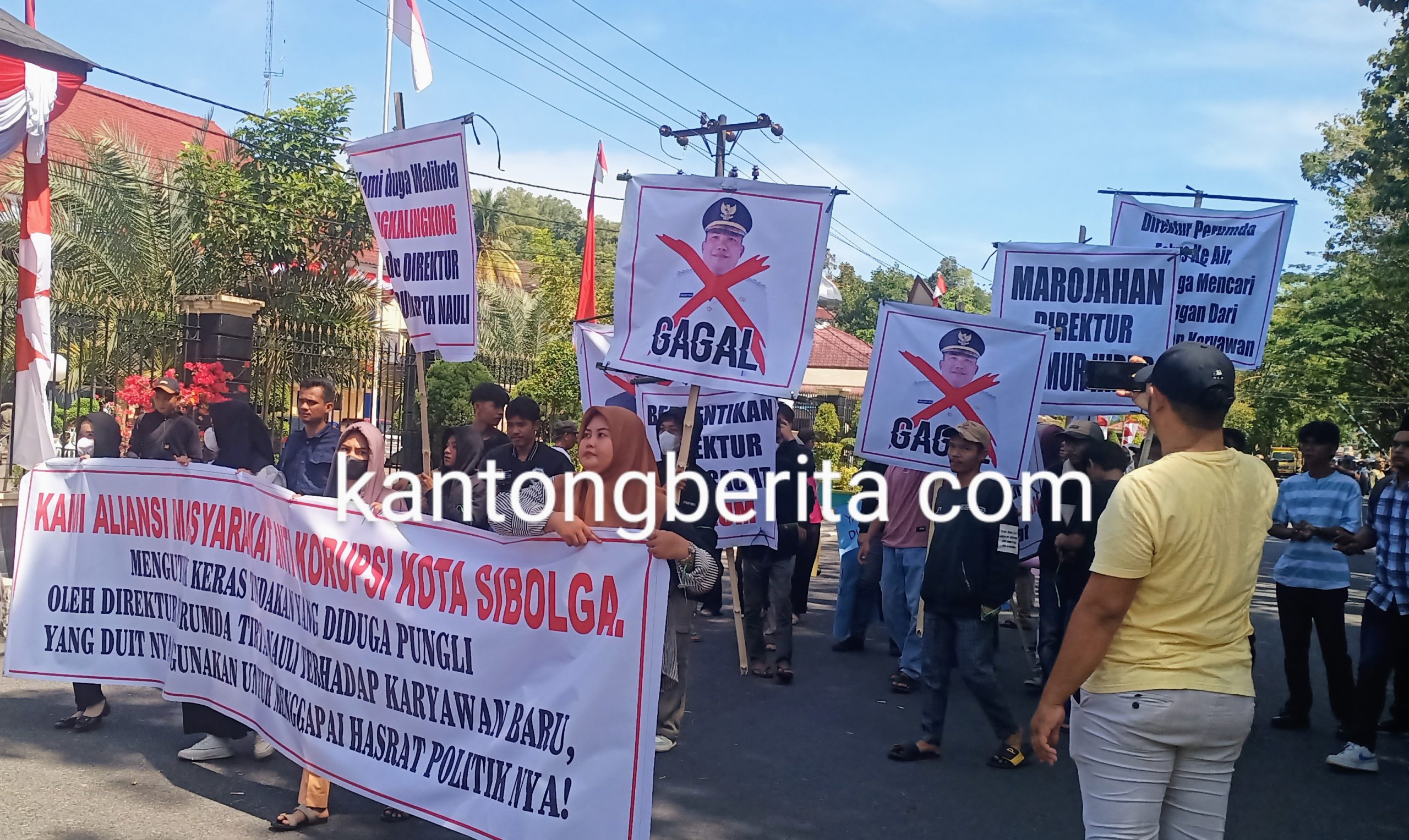 Massa kemudian bergerak menuju Kantor Wali Kota Sibolga dengan berjalan kaki sambil membentangkan baliho bergambarkan Wali Kota Sibolga Jamaluddin Pohan dan Direktur Perumda PDAM Tirta Nauli Sibolga Marojahan Panjaitan yang diberi tanda silang berwarna merah.